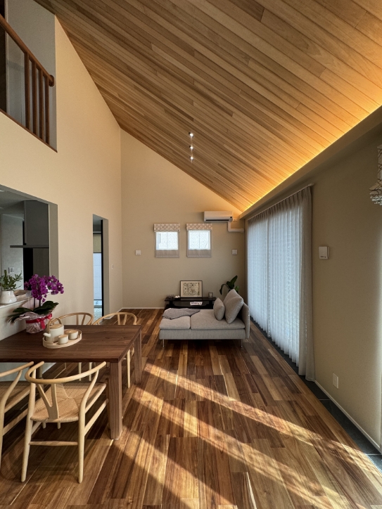 南海トラフ巨大地震を見据えた最高レベルの構造強度、家じゅうの温度差が少なく身体への負担が少ない高気密高断熱、ビニールクロスや合板床などを使わない「新築のにおいがしない」シックハウス対策、川崎医科大学と実証実験を行ったオリジナル花粉症対策素材など全ての構成要素について高性能を追求しています。