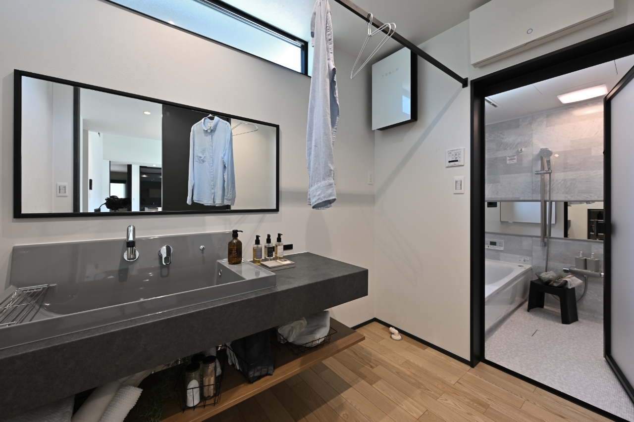 洗濯物もしっかり干せて、たっぷりしまえる洗面スペース。